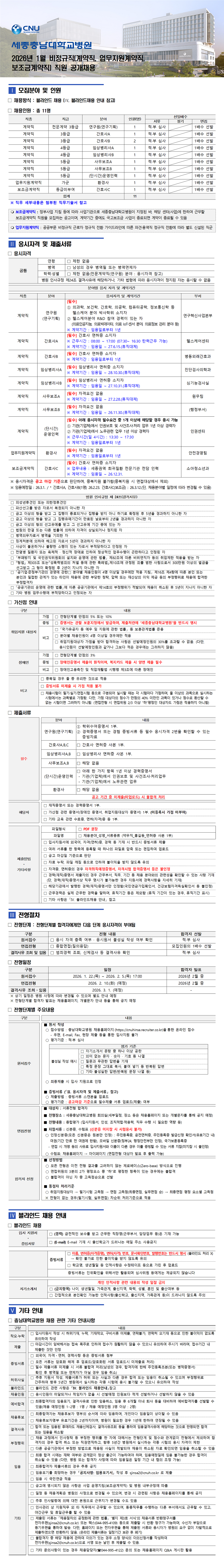 [세종] 2026년 1월 비정규직(계약직, 업무지원계약직, 보조금계약직) 직원 채용공고