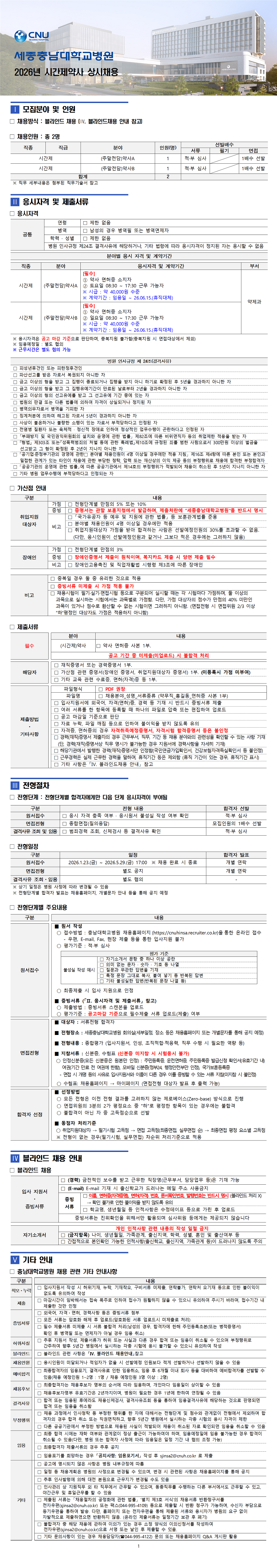 | 채용인원 | 2명 | 우대조건 | 「국가유공자 등 예우 및 지원에 관한 법률」에 의한 취업지원 대상자 및 「장애인복지법」에 의한 장애인 채용 우대 |