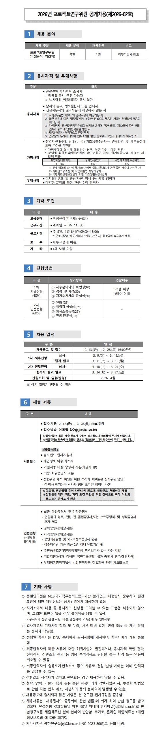 [통일연구원] 2026년 프로젝트연구위원 공개채용 공고(제2026-02호)